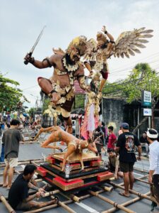 ニュピの前夜、オゴオゴというお祭りがあります。各村(バンジャール)の住民が手作りした巨大な悪霊の人形をパレードして、最後に燃やすことで邪気を浄化するという、バリの伝統行事。